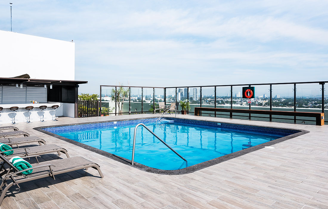 • Alberca climatizada, panorámica 360° con vista de la ciudad.